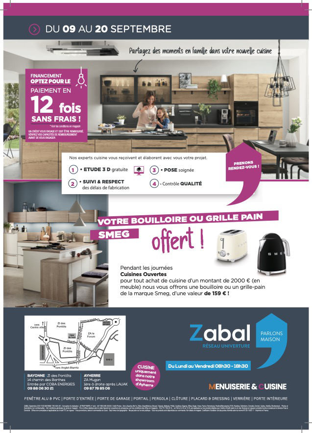 Zabal a le plaisir de vous annoncer son opération « Les Journées Fenêtres Ouvertes » du 09 au 20 septembre .